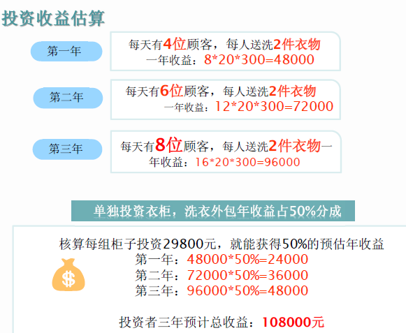 看了一个智能自助洗衣柜的加盟商给出的盈利预测,看上去前景(钱景)相当不错,可实际情况真不知道如何!